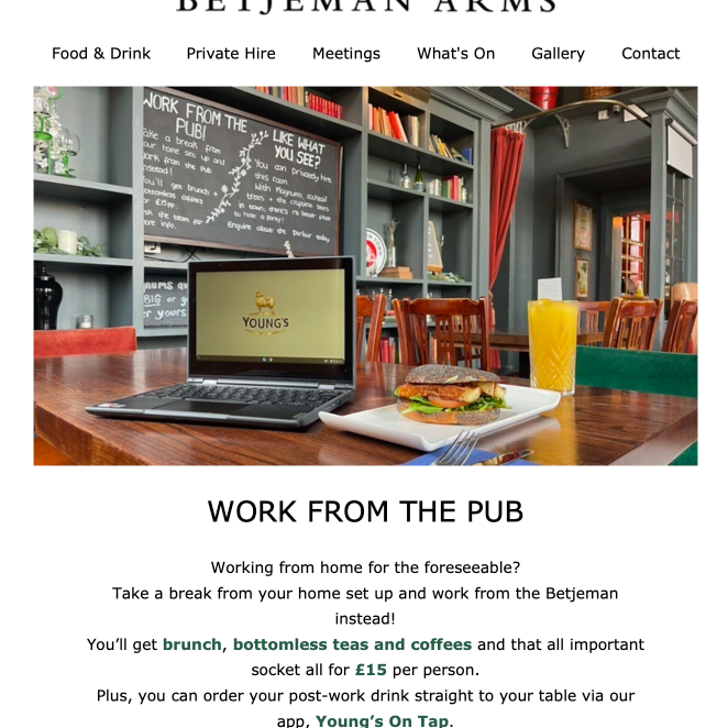 Remote working in pubs and restaurants